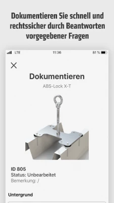 ABS Doku ist Dein Dokumentations-Tool fürs Dach. Die App bietet Dir eine unkomplizierte und papierlose Dokumentation bei der Montage und Wartung von Absturzsicherungssystemen. Dank des intelligenten Fragenkatalogs erstellst Du im Handumdrehen lückenlose und rechtssichere Unterlagen. Ganz neu: Mit dem Safety Check siehst Du auf einen Blick, wann und ob vorschriftsmäßig dokumentiert wurde.