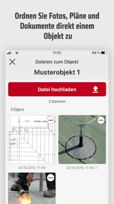 • individuelles Profil ohne Speicherlimit: Absturzsicherungen, Solaranlagen, Regenrinnenwartung – lege so viele Projekte an, wie Du willst.