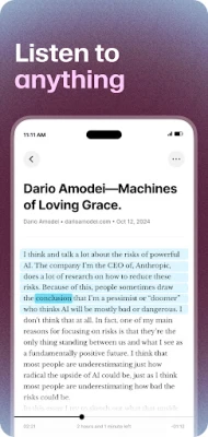 ElevenReader is an AI driven text to speech app that acts as an ideal audio companion during your commute, while exercising, at work or while at school. Powered by ElevenLabs’ very own contextually aware Text to Speech (TTS) model, ElevenReader puts the highest-quality AI voice technology in your pocket.