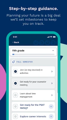 My Journey is your personal roadmap. Set goals, complete grade-level tasks, and track your progress. Whether you're exploring majors, applying for scholarships, preparing for college, or exploring careers, My Journey keeps you organized and ready for graduation and beyond. It is your all-in-one student planner for high school success.
