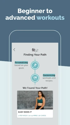 With fit52, every card reveals an exercise and number of reps, removing boredom from repetitive fitness routines by offering a variety of fresh workouts. Choose a ‘Path’ based on your fitness level and personal goals, making it easy to fit a workout into your busy schedule.