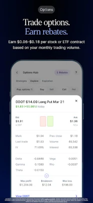 On Public, you can earn $0.06–$0.18 for each stock or ETF options contract you trade, with higher earnings as you trade more contracts each month.