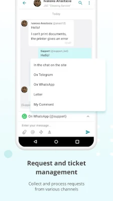 ● Requests and tickets management: Centralized collection and processing of requests from various channels (E-mail, Telegram, WhatsApp, online chat, forms on the website), provides prompt response and control of task execution.