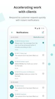 ● Accelerate customer service: Instant notifications and omnichannel communication allow you to respond quickly to requests without losing information.